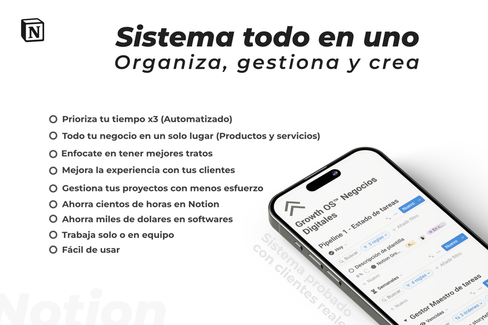 Ahorra miles de horas diseñando y creando este sistema en Notion. Ya que está pensando para que puedas llevar el flujo de tu negocio de forma simple y puedas ver todo de un solo vistazo sin olvidar nada.